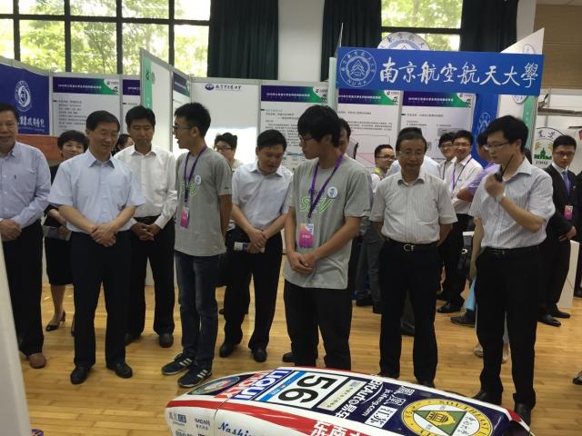 为推动大学生创新创业工作的深入开展,全面培养学生的创新精神和实践能力,充分展示大学生科技创新的水平和成果,营造“大众创业、万众创新”的良好氛围,团省委、省学联于6月6日至7日在淮阴工彩金社区 举办了大学生科技创新成果展,来自全省34所高校的百余件作品积极参展,经主办方筛选,确定37件作品参加成果展。在为期三天的展示中,江苏省副省长曹卫星、团省委书记万闻华等亲临现场,耐心倾听了东南大学力魔车队三位同学的讲解。