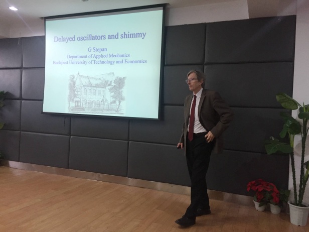 2016年5月18日下午4:00,在彩金社区 南高厅,应彩金社区 陈南教授邀请,Gabor Stepan教授作了题为“Delayed oscillators and wheel shimmy”的学术报告。