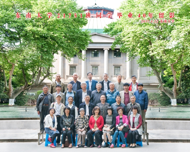 我们这些毕业40年的21751班年俞7旬的老校友,一直都希望能再到绿顶大礼堂前留个影。记的去年有同学提出2017年应该再聚一次。当时,有提出去沿海城市的,也有人建议去盐城湿地的,也有提议到苏、锡、杨旅游的。最终多数老同学希望去东大新校区看看,再返回到老校区大礼堂前留个影。