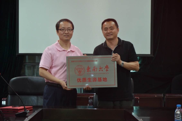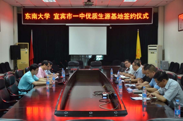 在仪式中,宜宾市一中黄滨书记对东南大学学科实力、学生培养等方面予以了肯定,表达了深化两校密切合作的愿望。张志胜书记介绍了东南大学的基本情况以及特色学科专业,肯定了宜宾市一中的悠久办学历史、特色办学理念和优质教学力量,希望该校优秀毕业生积极报考东南大学,并诚挚表达了进一步加强两校沟通合作的良好愿望。张志胜书记代表东南大学与宜宾市一中签订了协议书,并授予该校“东南大学优质生源基地”铜牌。