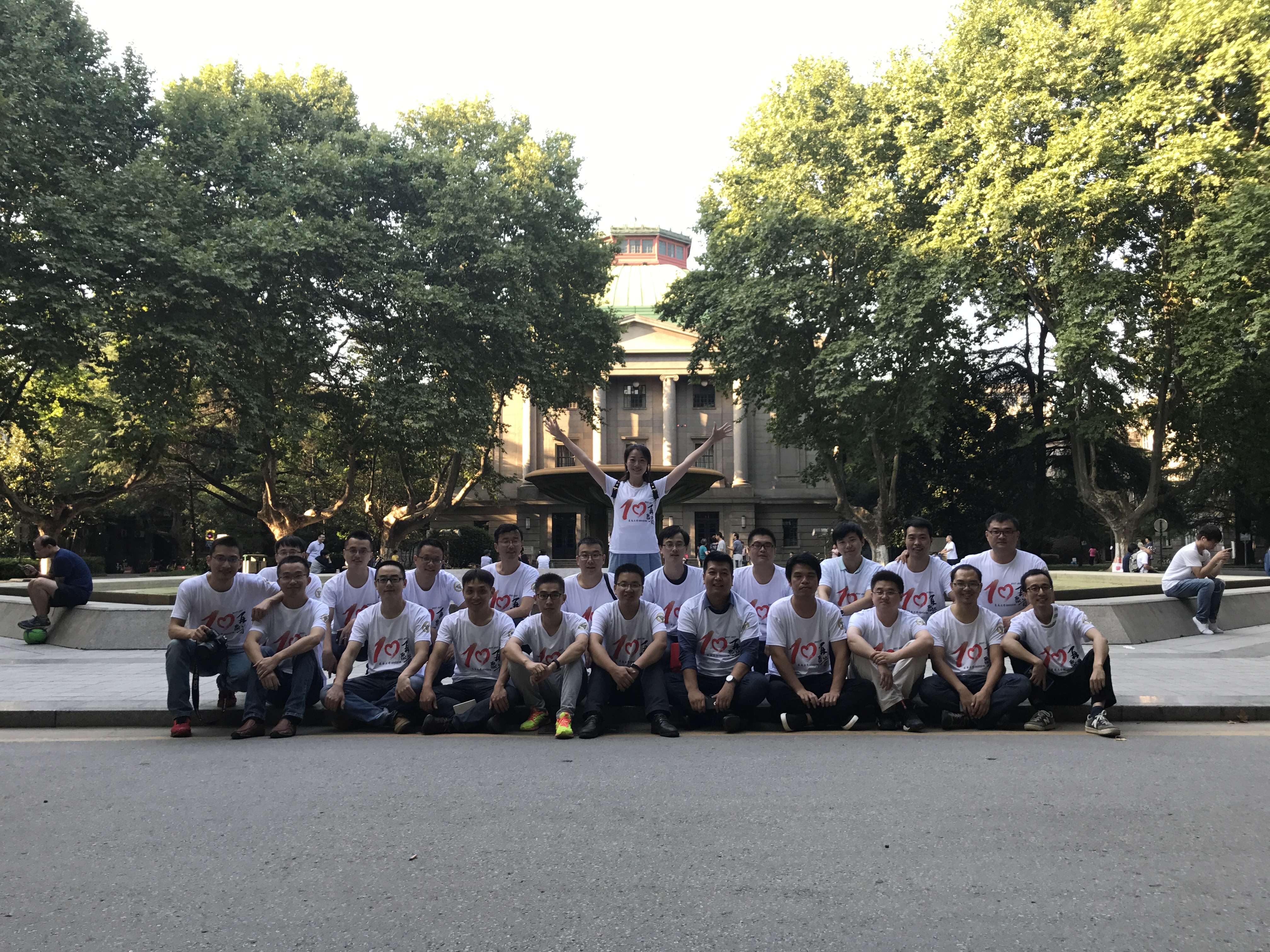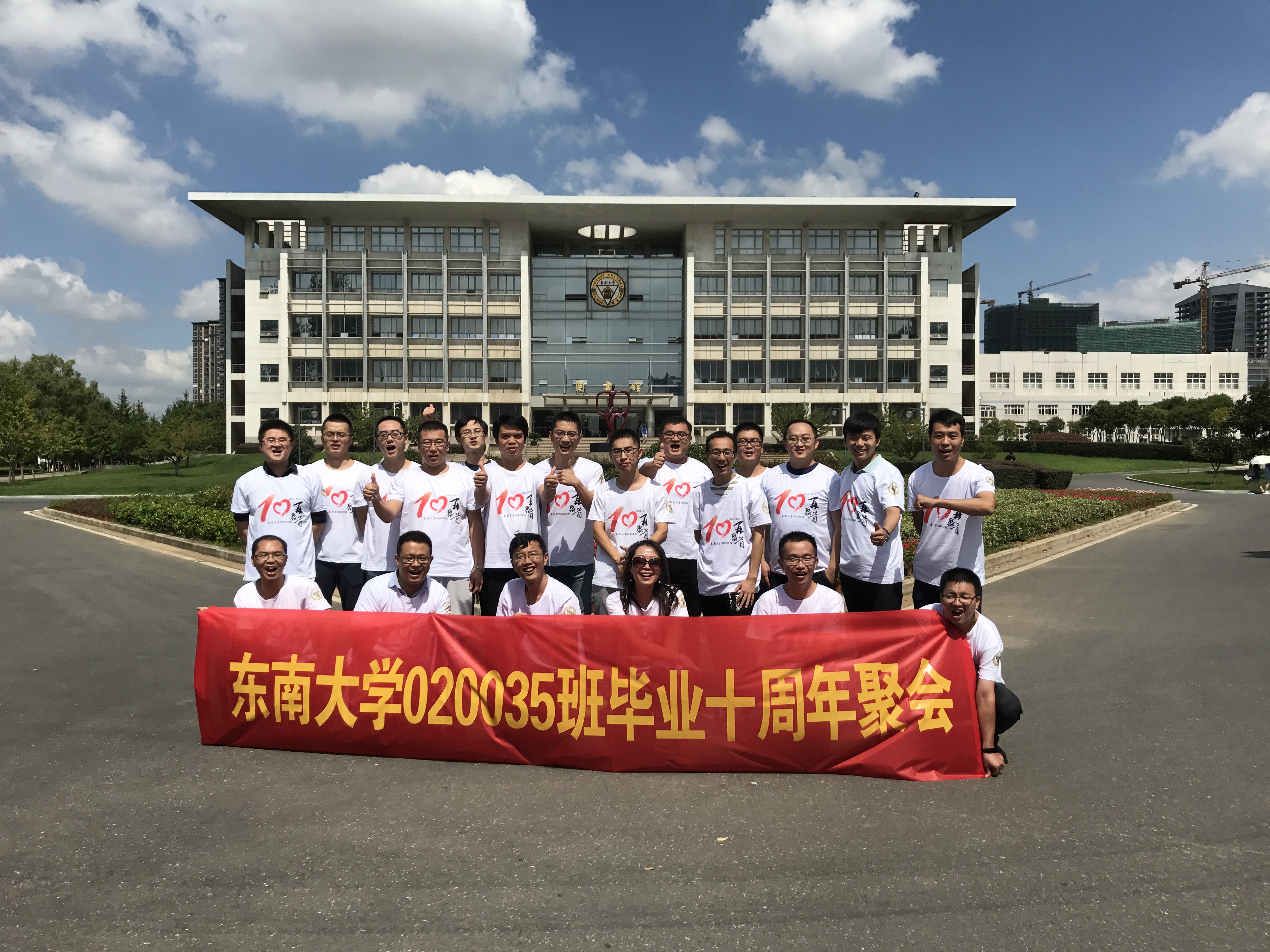 2017年9月17日,原020035班校友一行17人回母校庆祝毕业十周年。同学们一起漫步于六朝松下,大礼堂前,九龙湖畔,一 起回忆当初,共叙友情。彩金社区 校友会付瑜老师和胡涛老师代表彩金社区 热情接待了各位校友。