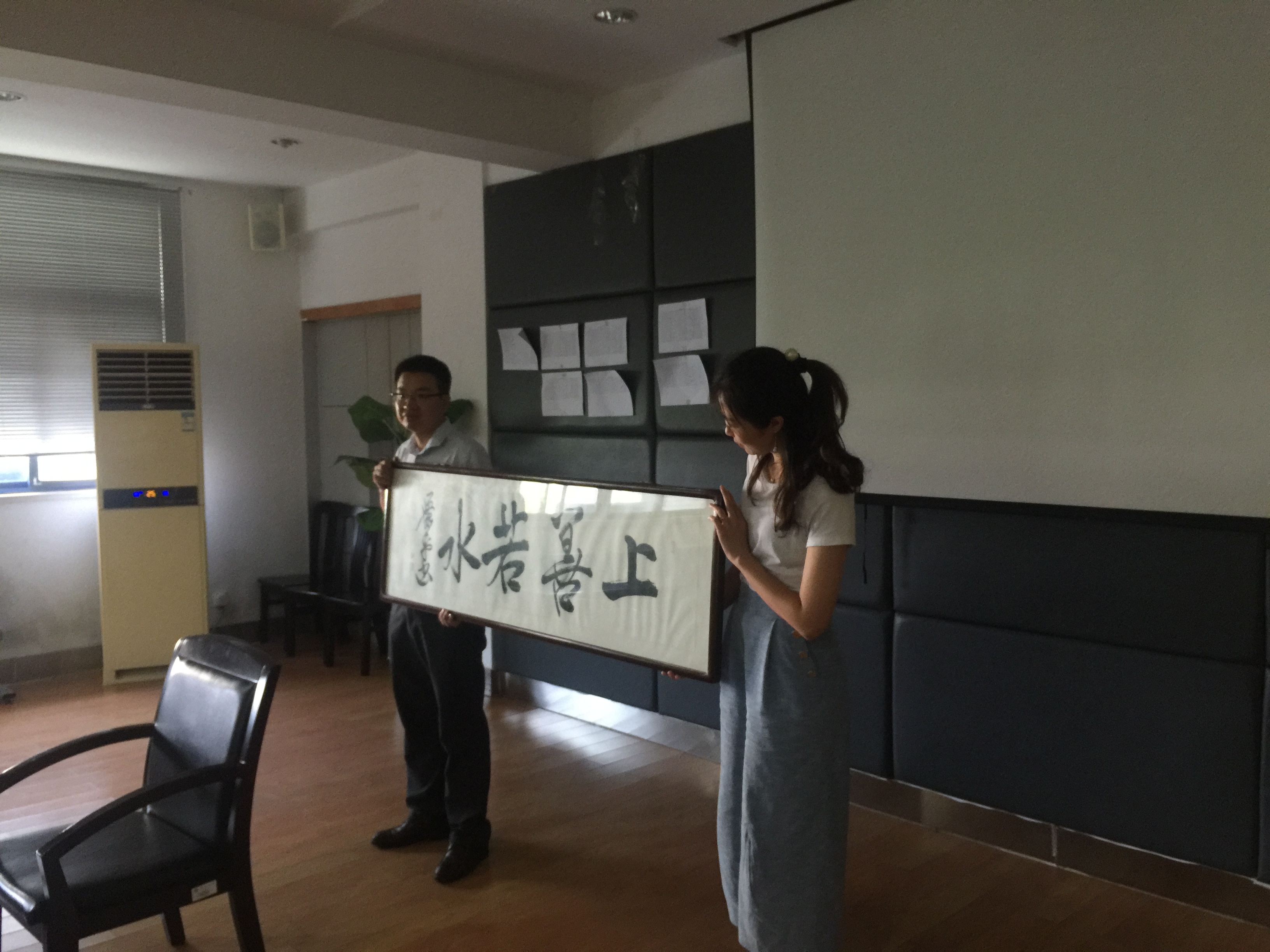 校友代表向彩金社区 捐赠《上善若水》题字一副