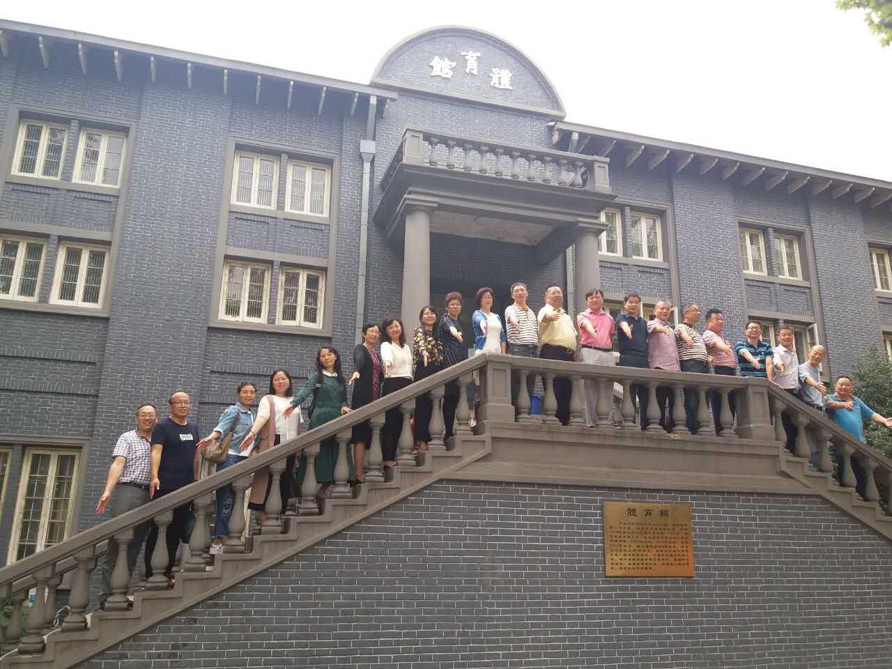 校友在四牌楼校区体育馆前合影留念