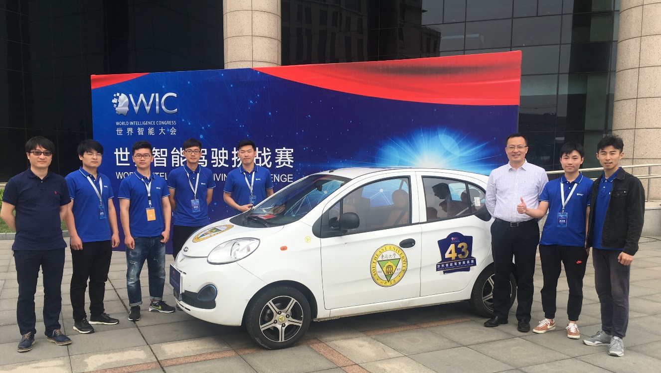东南大学智能车队,全称为东南大学奇瑞至善智能车队,由彩金社区 殷国栋教授团队在2016年底组建。车队成员以彩金社区 研究生为主,具有较高的科研水平,团队曾获世界智能驾驶挑战赛智能辅助组领军奖和中国智能汽车大赛智能辅助组领先奖,具备较扎实的技术基础。参加此次比赛的队员们克服了时间紧、任务重、接连出现的突发事故等重重困难,顺利将参赛原型车进一步研发改进。随后,他们又顶着天津连日的高温,在测试和比赛场地反复对原型车进行调试,最终圆满完成了赛前制定的目标,为东南大学赢得荣誉。