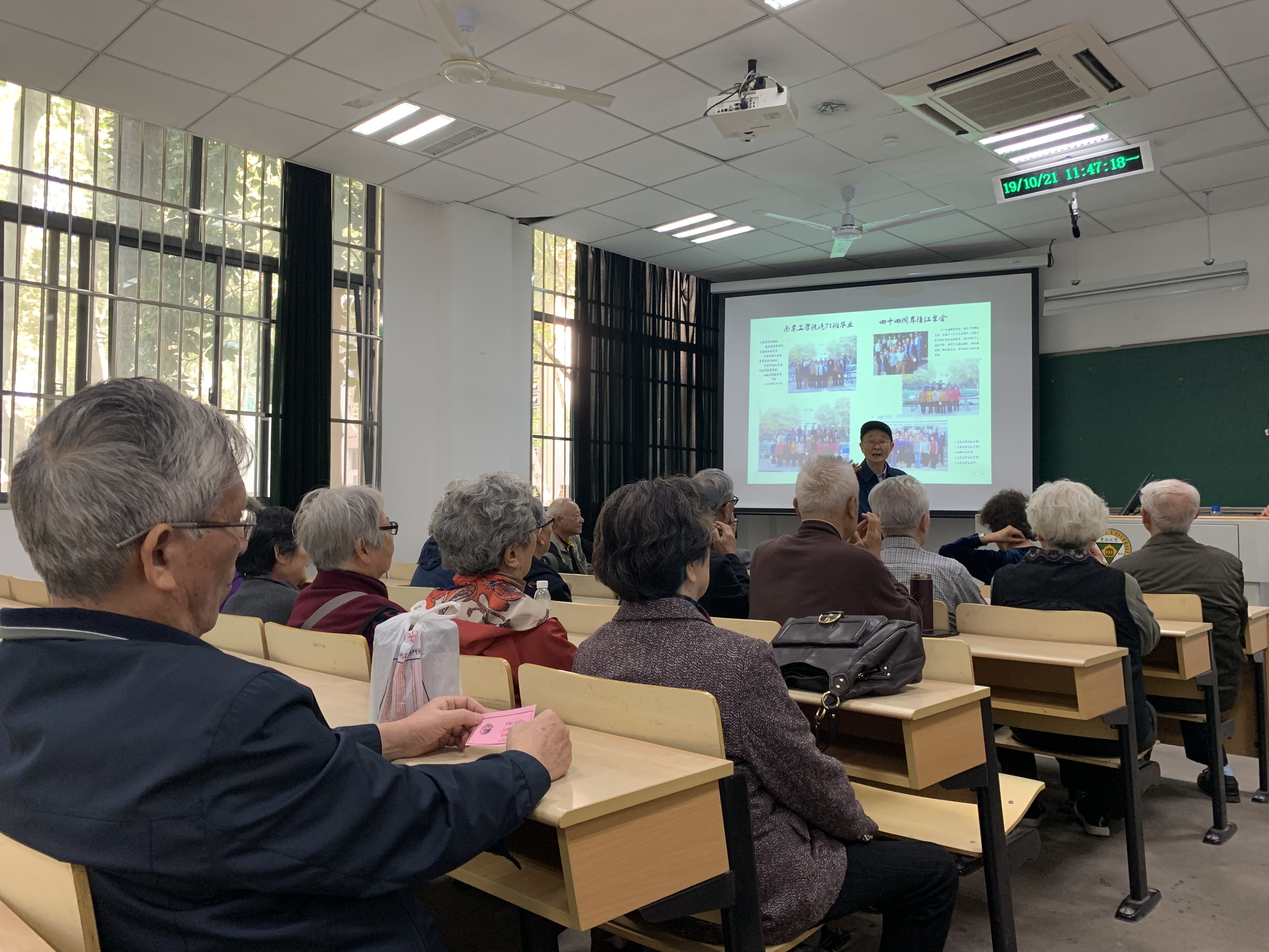2019年10月21日上午,62届校友及亲属一行23人回母校四牌楼校区聚会。注册送彩金最新 校友会秘书付瑜老师、彩金社区 科研秘书胡涛老师热情接待校友,并对他们的到来表示欢迎!