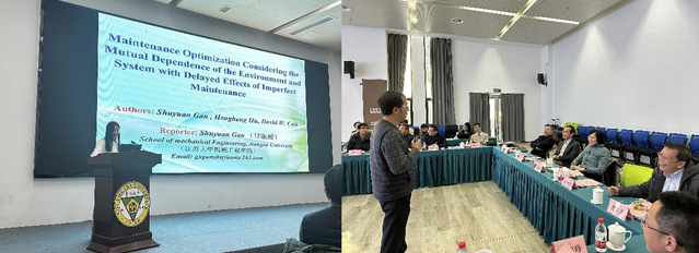 随后,各个高校的可靠性专家学者分别进行了报告。东南大学周一帆教授、王冠军教授、苏春教授、谢明江副教授围绕复杂系统维修策略建模、多态系统可靠性评估与优化以及退化过程分析等主题分别介绍了自己最新的研究成果;南京理工大学汪建钧、林成龙老师介绍了南京理工大学质量管理与可靠性工程研究团队的人员组成以及相关的研究成果;南京航空航天大学赵旭峰、达高峰老师分别介绍了自己的研究方向并对未来的研究方向进行了展望;合肥工业大学郑锐老师介绍了其正在进行的关于“考虑动态采样的多元贝叶斯控制图”的研究;江苏大学甘淑媛老师报告了考虑环境和系统相依性以及延迟效应的维修优化问题,中国计量大学张建侠老师、南京财经大学马妍老师分别介绍了入职后承担的工作以及感想。报告期间,谢旻院士与金炯华教授对以上报告做出了相应评价与交流讨论。