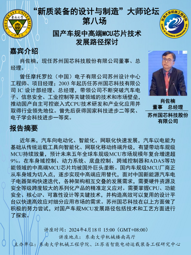 “新质装备的设计与制造” 大师论坛第八场:肖佐楠总经理——国产车规中高端MCU芯片技术发展路径探讨