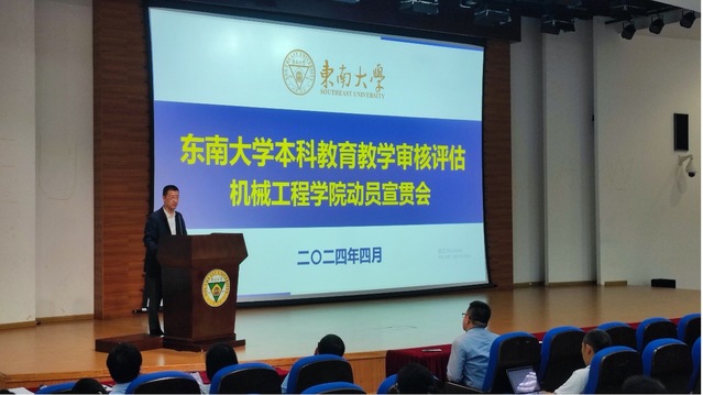 为进一步落实新一轮本科教育教学审核评估迎评工作,细化部署各项任务,2024年4月25日中午,彩金社区 本科教育教学审核评估动员宣贯会在东南大学九龙湖校区纪忠楼报告厅顺利召开。彩金社区 院长费庆国、党委副书记兼副院长王斌、副院长毕可东、副院长陈震以及全体教职工参加动员宣贯会,会议由毕可东副院长主持。
