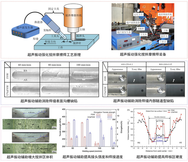 图1 超声振动辅助搅拌摩擦焊工艺原理、装备及工艺特性