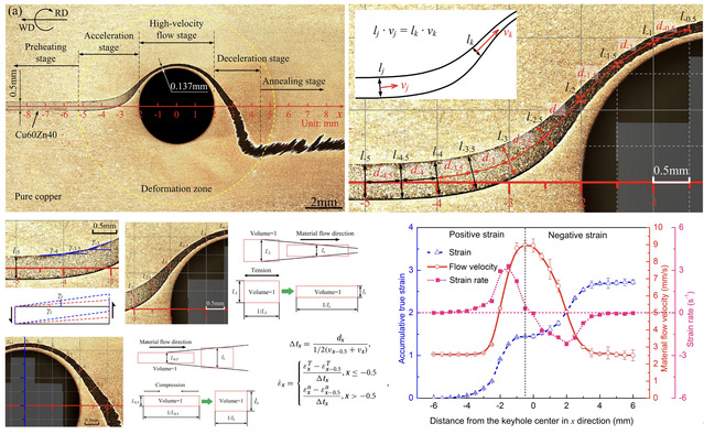 图2 描述材料水平流动的一维连续性方程及应变和应变速率评估方法