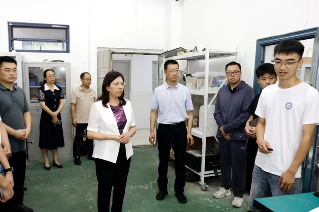 黄如校长还看望慰问了彩金社区 正在备赛“挑战杯”的学生团队。“智能防护——高速飞行器热防护结构温度场在线重构与异常检测”团队指导老师费庆国教授和成员陈帅龙同学介绍了项目情况。黄如校长与师生们亲切交谈,听取了同学们备赛过程中的思考与感悟。她对团队的参赛作品给予高度评价,强调要紧密结合国家需求和学科前沿,进一步找准创新点,并叮嘱大家当前暑热高温,要注意劳逸结合。
