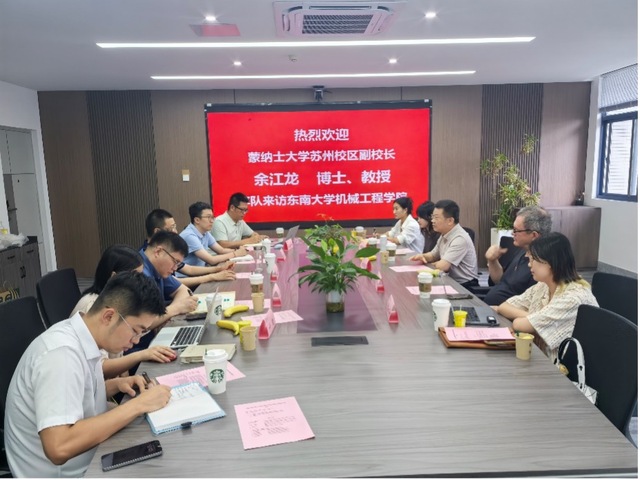 蒙纳士大学苏州校区副校长余江龙、苏州校区教师Mr. Ian Wong、董方舟博士、田馨妮博士、朱古月老师,以及注册送彩金最新 费庆国院长、孙东科副院长、设计科学系主任阚亚鲸、智能制造系主任王晓宇、吴闻宇博士、刘兴涛博士、付瑜参加会议。会议由孙东科副院长主持。