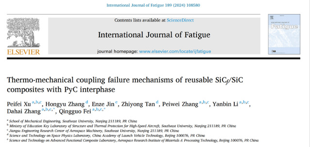 近日,注册送彩金最新 航空航天系费庆国教授团队联合北京临近空间飞行器系统工程研究所,在耐高温陶瓷基复合材料的重复使用性能评价与性能演化机理方面开展攻关,并取得重要进展,在疲劳领域顶刊《International Journal of Fatigue》上发表了题为“Thermo-mechanical coupling failure mechanisms of reusable SiCf/SiC composites with PyC interphase”的研究成果。