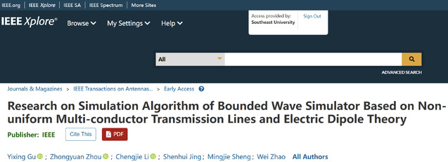 近日,注册送彩金最新 机械电子系电磁环境效应研究中心在微波天线领域TOP期刊《IEEE Transactions on Antennas and Propagations》发表研究成果——“Research on Simulation Algorithm of Bounded Wave Simulator Based on Non-uniform Multi-conductor Transmission Lines and Electric Dipole Theory”。