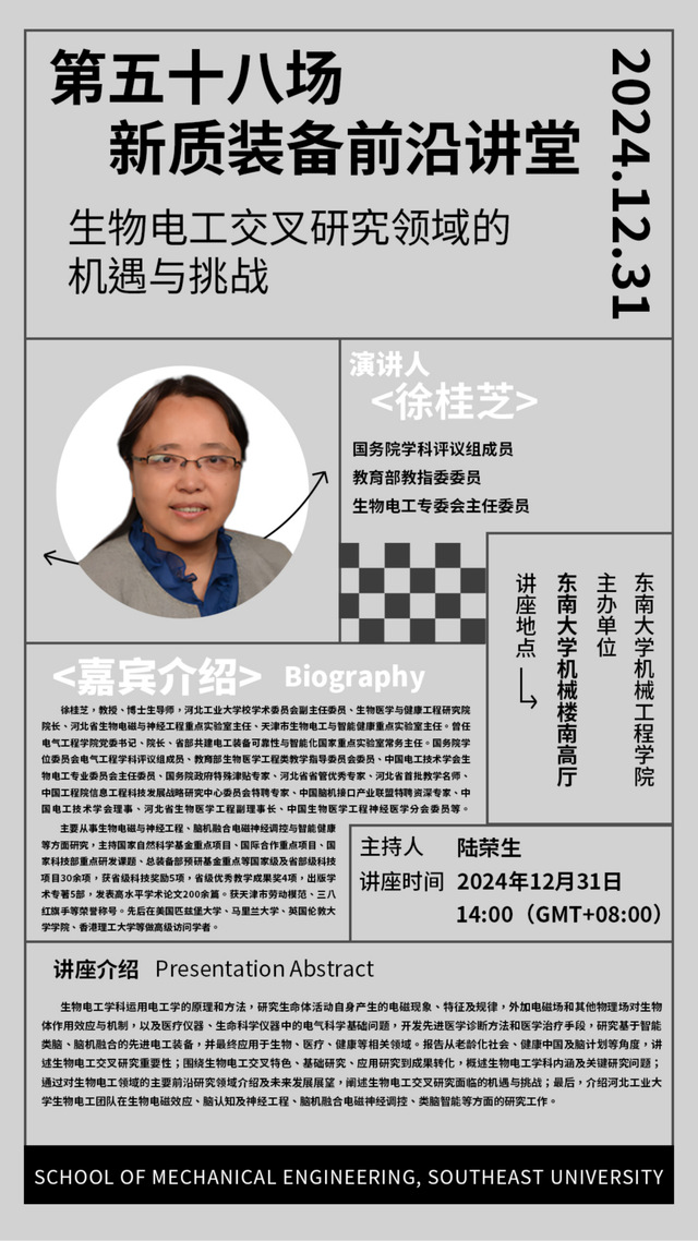 徐桂芝,教授,博士生导师,河北工业大学校学术委员会副主任委员,生物医学与健康工程研究院院长,河北省生物电磁与神经工程重点实验室主任,天津市生物电工与智能健康重点实验室主任。曾任电气工程彩金社区 党委书记、院长、省部共建电工装备可靠性与智能化国家重点实验室常务主任。