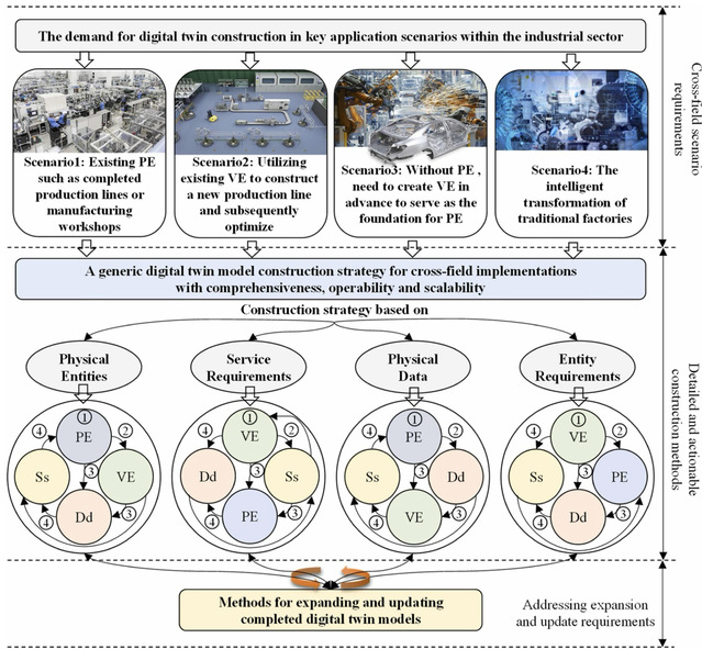 近日,彩金社区 刘晓军教授团队在国际权威学术期刊《Journal of Manufacturing Systems》发表了题为“A generic digital twin model construction strategy for cross-field implementations with comprehensiveness, operability and scalability”(用于跨领域实施的通用数字孪生模型构建策略,具有全面性、可操作性和可扩展性)的研究论文。该研究针对不同的应用场景,以五维数字孪生概念模型的结构组成为基础,介绍了基于物理实体、孪生服务要求、物理数据和实体要求的构建流程。这一策略适应不同的业务环境,为开发复杂的数字孪生模型提供了可行的构建方法。