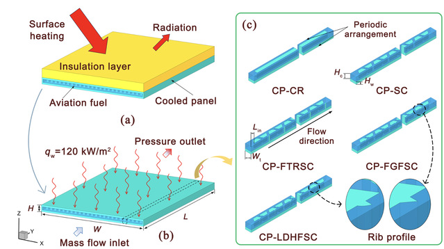 近日,注册送彩金最新 航空航天系费庆国教授团队在热力学领域TOP期刊《Energy》(中科院一区TOP期刊,IF=9.0)上发表题为“Numerical investigation of the hydrothermal performance in novel cooled panels with flow-guided pin fins and secondary channels for reusable launch vehicles”的研究成果,提出了一种用于可重复使用飞行器热防护的带有导流针翅和二次流道的微通道换热冷板。