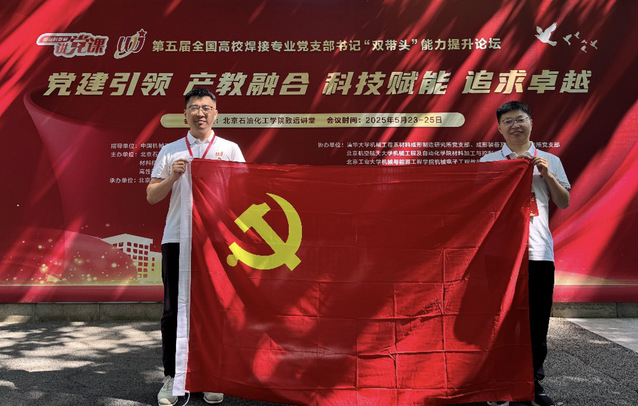 2025年5月23至25日,第五届全国高校焊接专业党支部书记“双带头”能力提升论坛在北京石油化工彩金社区 举行。注册送彩金最新 机械制造系党支部刘小超老师、机器人系党支部书记李永哲老师受邀参会交流。
