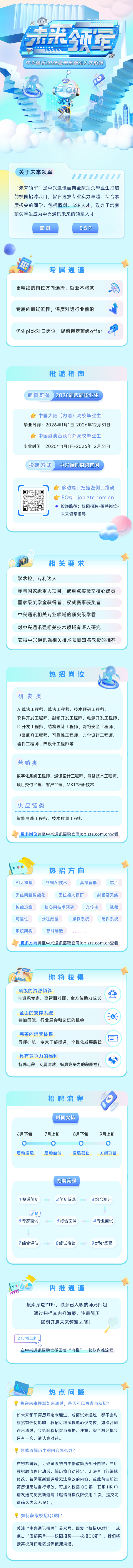 「未来领军」作为中兴通讯面向全球顶尖毕业生的王牌校招项目,聚焦挖掘专业硬核、综合实力超群的佼佼者!蓝剑、SSP人才计划虚位以待,这里将成为你职业腾飞的起点!