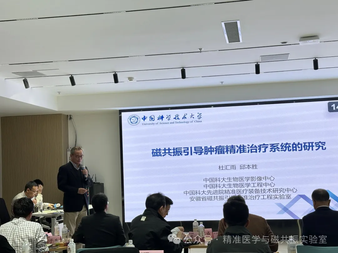 国家高层次青年人才、东南大学附属中大医院陆建副主任主持了“磁共振下的磁热疗内放疗”专题。在该专题中,东软医疗副总裁徐勤博士介绍了东软磁共振产品研发和创新技术发展历程,破核心部件卡脖子之局、破无可用系统平台之局,与AI智能结合的快速分子成像技术与临床应用等。北京大学高嵩教授介绍了发展具备磁感应热疗功能的诊疗一体化MRI系统的技术挑战,MRI梯度线圈如何为磁感应热疗提供高频交变磁场、高频交变磁场对超导磁体的影响与MRI系统的解决方案等。上海联影医疗科技有限公司代表、联合创新部总监袁健闵博士介绍了联影磁共振的技术进展,5T超高场MRI超高清成像助力重大疾病精准诊断,超高时空分辨率live成像技术捕捉动态影像,全球首台碳化硅磁共振实现绿色节能助力新能源革命。鑫高益梁平博士介绍了无液氦磁共振创新机型与诊疗一体化应用,超导可旋转全身多体位成像MRI系统以及其在对脊柱侧弯诊断上的应用,超大口径无液氦术中可移动磁共振等。东南大学附属中大医院陆建主任介绍了介入内放疗放射性粒子植入技术的发展与应用,自主研发的复合粒子磁热疗样机,以及提出如何利用现有磁共振进一步实现磁热疗走向临床,促进了与会专家的深入讨论。