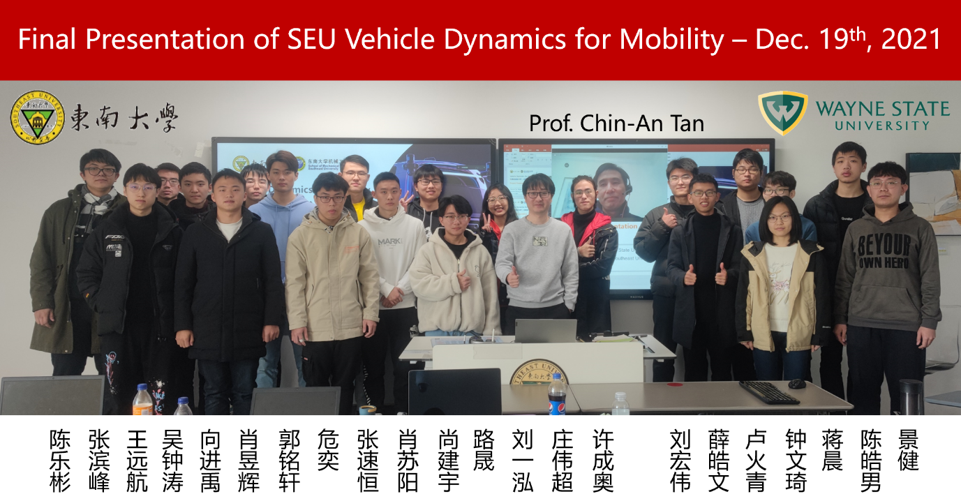 20211219日,由机械彩金社区 与美国Wayne State University联合开设的全英文课程,Vehicle Dynamics for Mobility课程圆满落下帷幕。该课程依托于车辆系统动力学(研讨)课程,以面向出行的汽车动力学控制为主要学习内容,通过结合2个车辆控制动力学建模与控制的项目实践,帮助同学们深入了解汽车横纵向动力学机理和常用控制方法及其应用