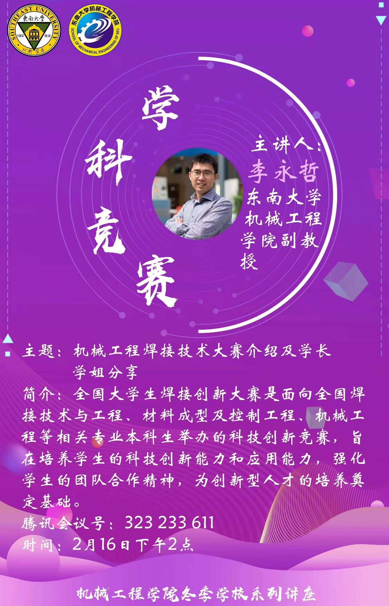 2月16日下午,李永哲老师和具有参赛经验的周咏琦学长、庄晨悦学长开展分享讲座,针对学生如何参加焊接创新大赛进行培训。