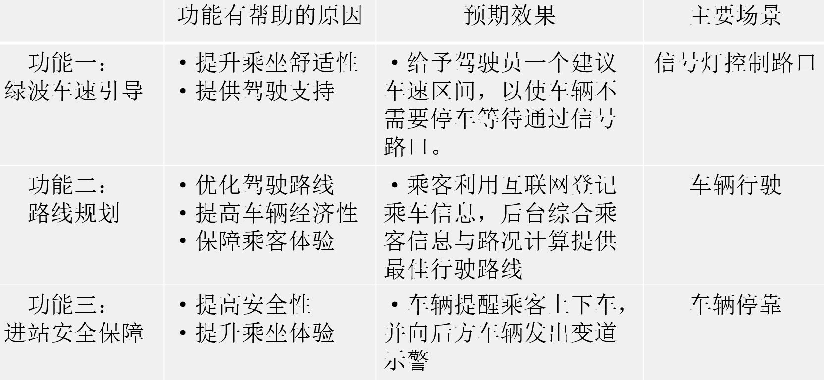 2)项目的第二阶段,小组完成了“V2X对集团客户定制化公交改造”与“V2X技术对冷链运输车的改造”两个V2X改造产品设计。其中我主要负责“V2X对集团客户定制化公交改造”项目。