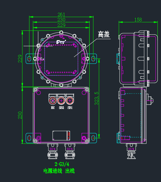 防爆电磁起动器控制系统元器件的设计选型及启动器和防爆箱的三维建模