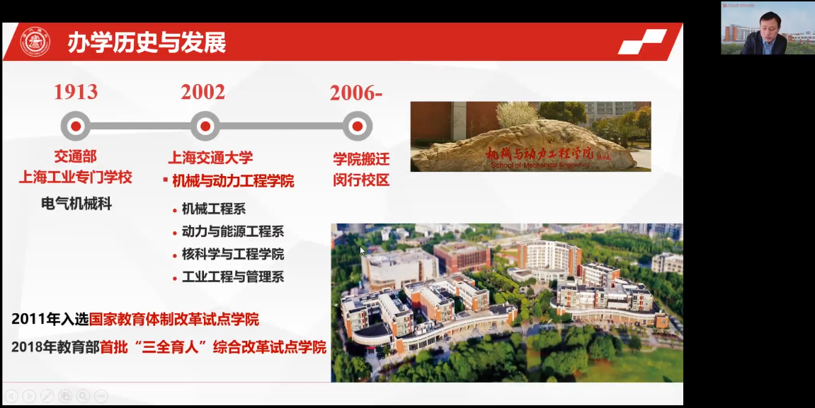 上海交通大学机械与动力工程彩金社区 胡永祥副书记从学科专业基本情况、新时代人才培养定位以及培养体系与主要举措三个方面分享了上交机械与动力工程彩金社区 的建设情况,详细介绍了其人才培养体系改革、宽口径交叉融合课程体系建设、“机械-数学”双学位项目设立等基本内容和所获成效。