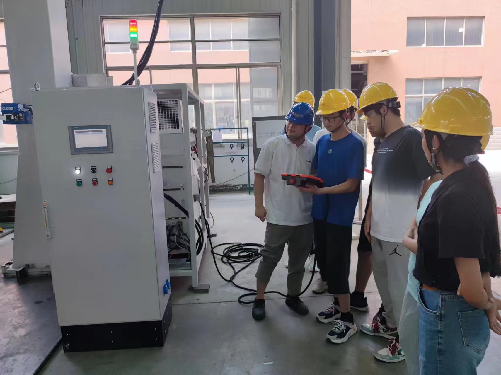 同学在企业导师指导下通过示教器操作机械臂
