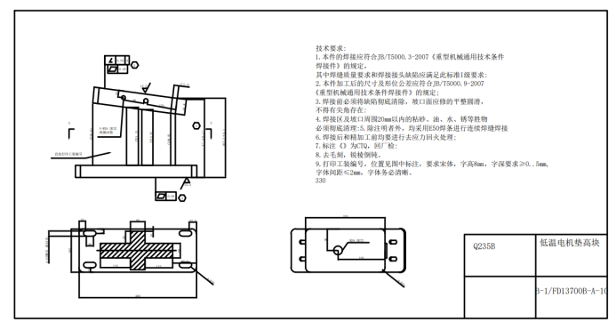 结构件设计要求:采用铸件或焊接件,轴承座厚度、箱体壁厚等根据机械设计手册推荐值或经验值设计,不做有限元计算